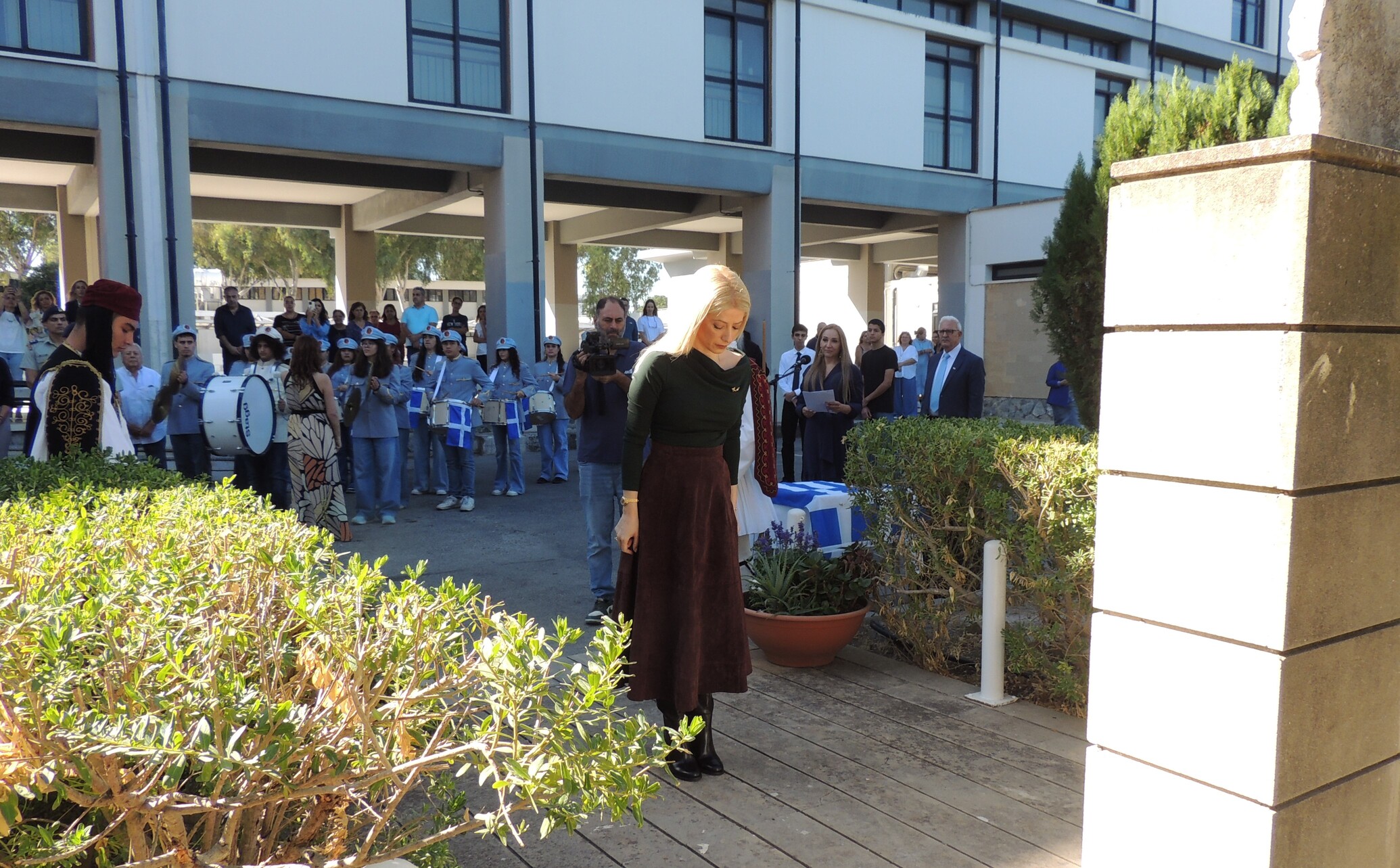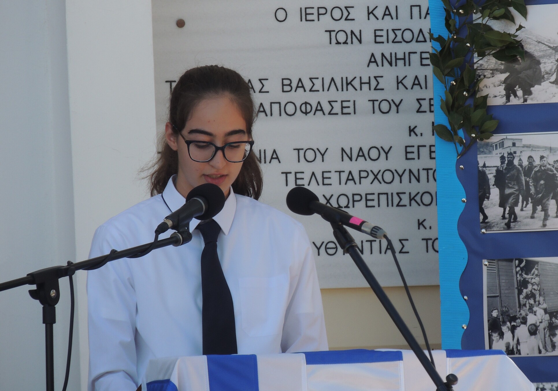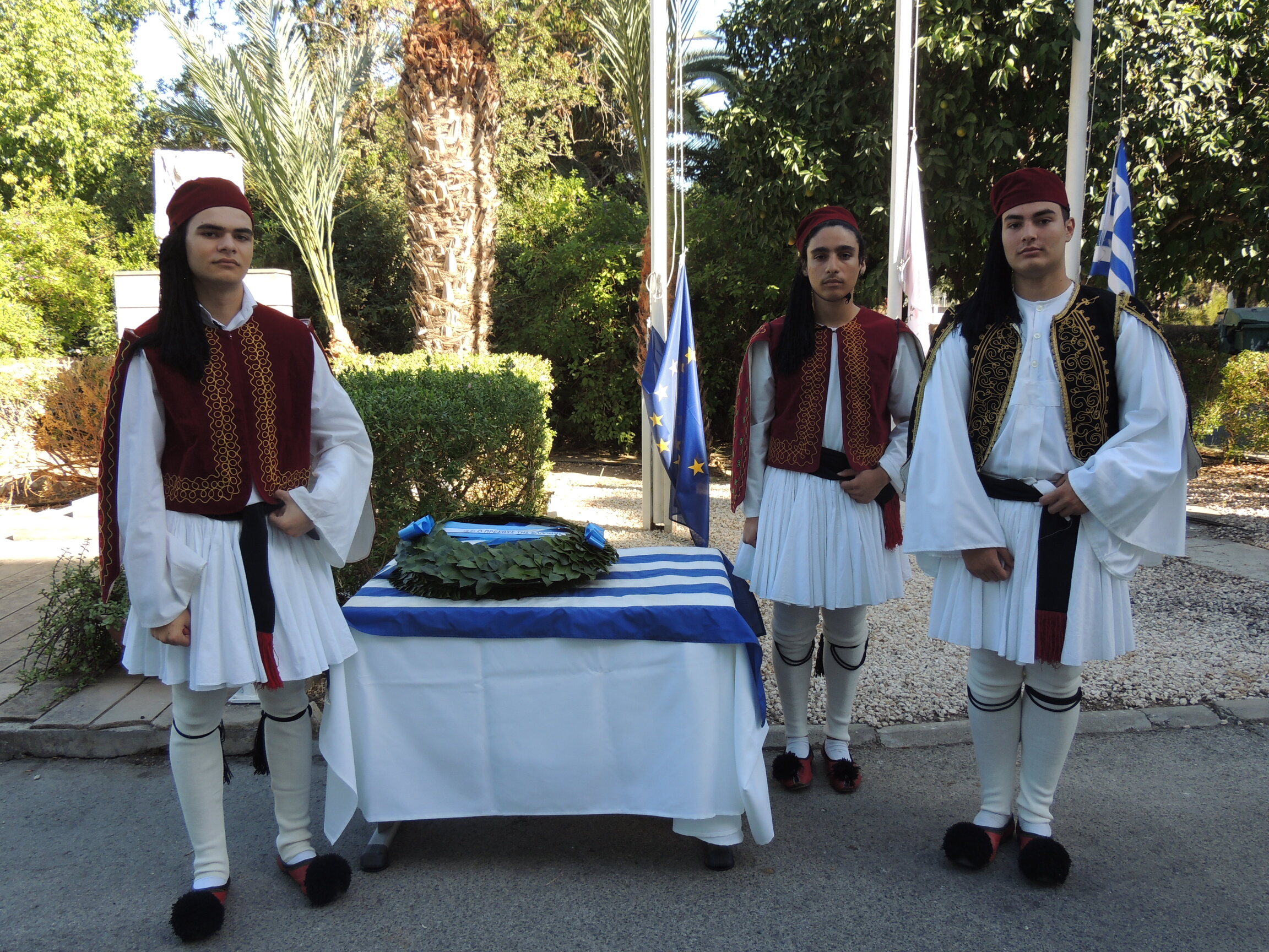 Τον πανηγυρικό της ημέρας εκφώνησε η Πρόεδρος της Βουλής των Αντιπροσώπων κ. Αννίτα Δημητρίου. Η εκδήλωση διανθιζόταν με λογοτεχνικά κείμενα, τραγούδια, ηχητικό ντοκουμέντο, Ελληνικούς παραδοσιακούς χορούς και θεατρική σκηνή. Την εκδήλωση παρακολούθησαν όλοι οι μαθητές του Σχολείου, επίσημοι προσκεκλημένοι και γονείς των μαθητών του Αγήματος.