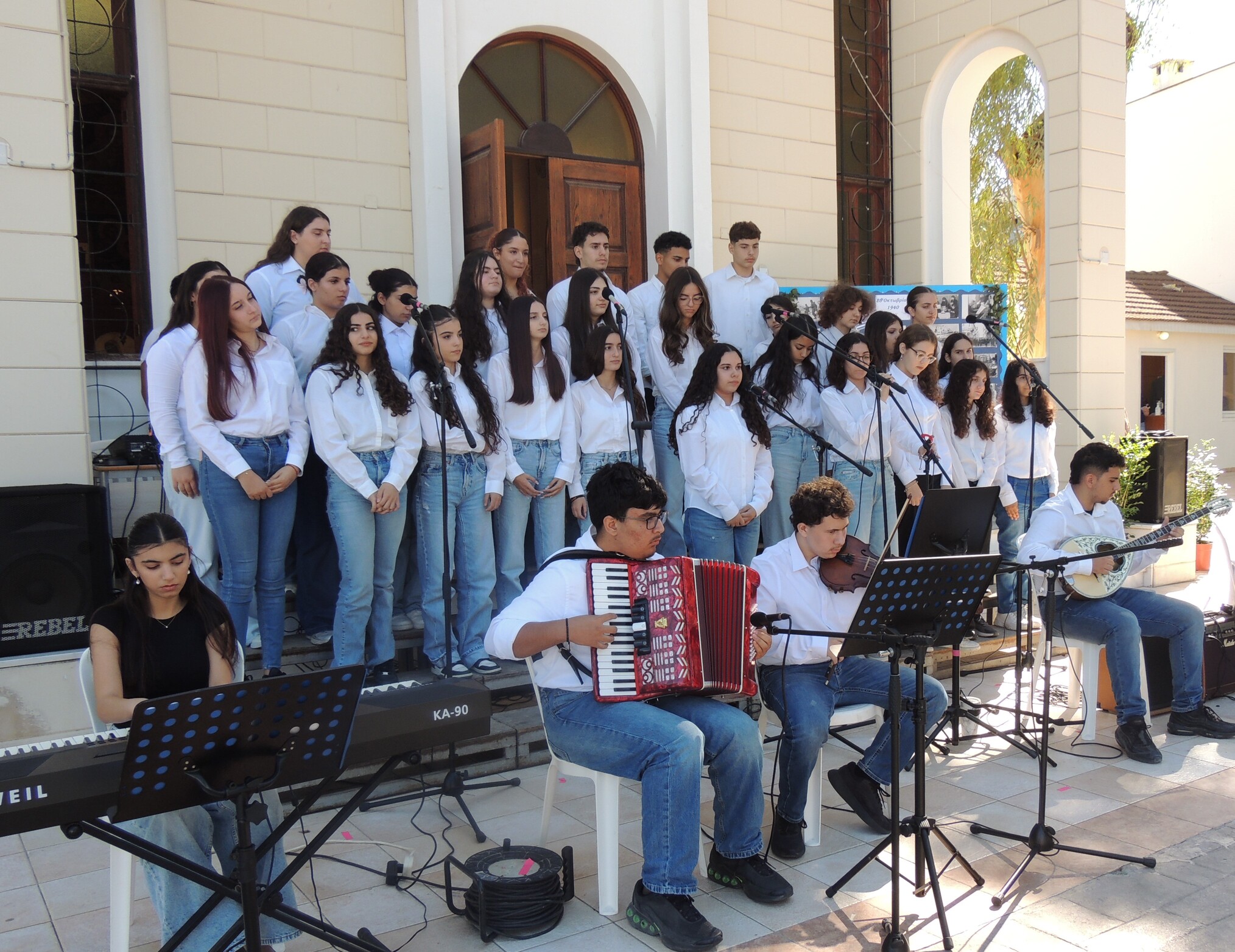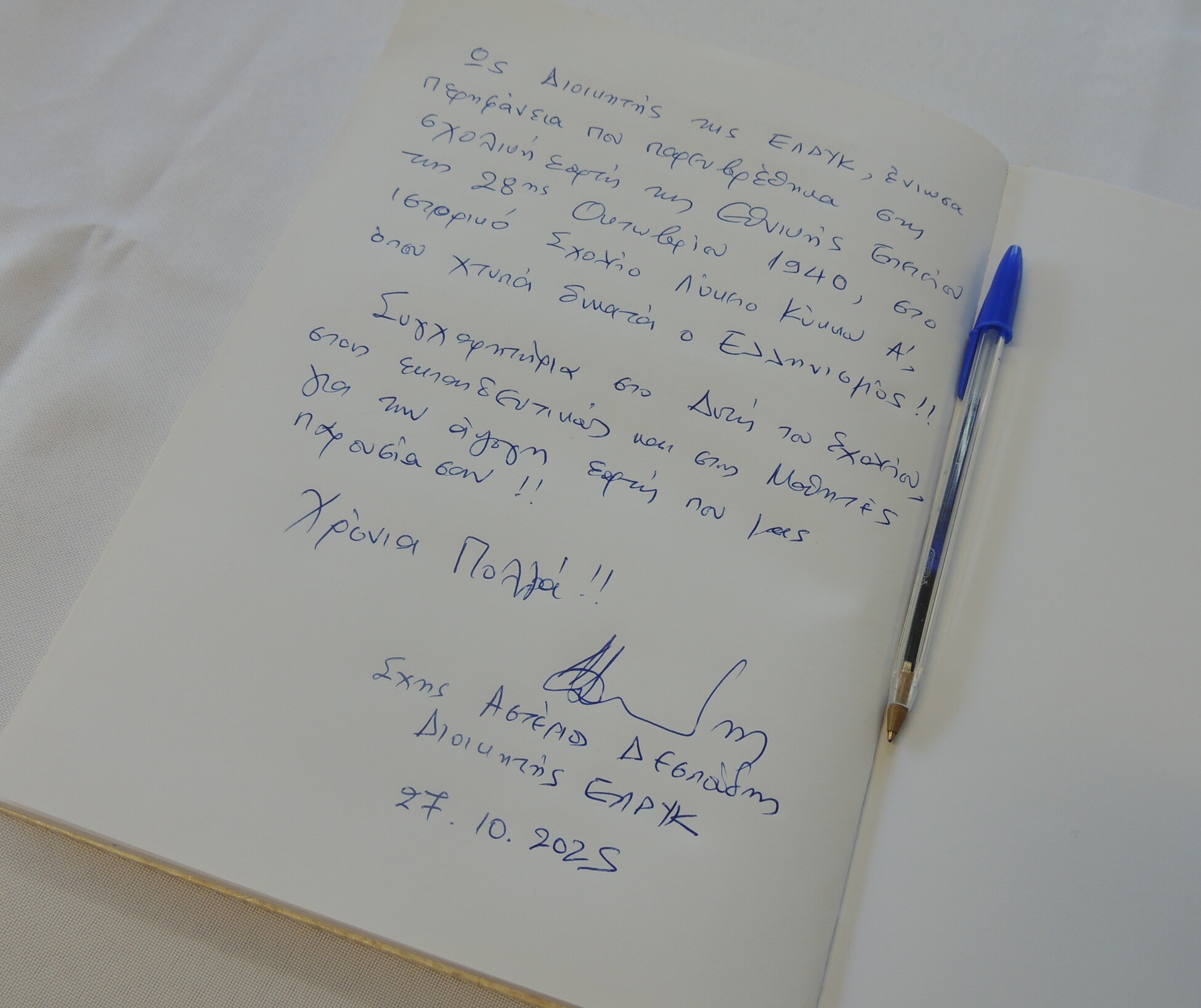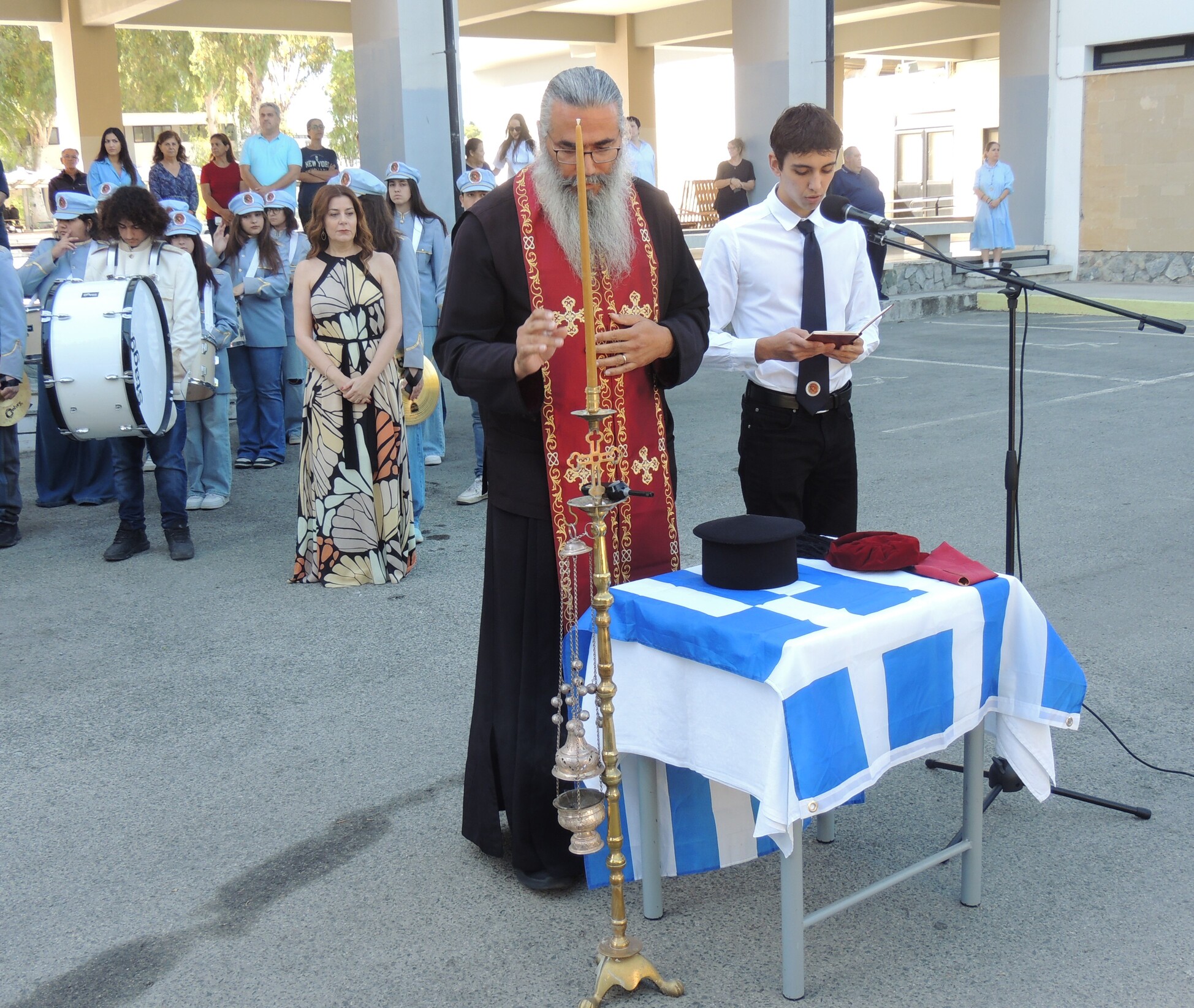 Η εκδήλωση για τον Εορτασμό της Ελληνικής Σημαίας και της Επετείου της 28ης Οκτωβρίου του 1940 γιορτάστηκε με κάθε λαμπρότητα στο Σχολείο μας τη Δευτέρα 27 Οκτωβρίου 2025 στον προαύλιο χώρο της Εκκλησία μας. Οι εκδηλώσεις άρχισαν στις 9:20 π.μ. με την Έπαρση της Σημαίας στο Ηρώον του Σχολείου. Ακολούθησε Τρισάγιο υπέρ των πεσόντων κατά την αντίσταση της Ελλάδας στον ιταλικό φασισμό 1940-41 και κατάθεση στεφάνων στο «Ηρώον». Κατέθεσαν στεφάνια η Πρόεδρος της Βουλής των Αντιπροσώπων κ. Αννίτα Δημητρίου, εκ μέρους του Πρέσβη της Ελλάδας η Ακόλουθος της Πρεσβείας κ. Έφη Εμμανουηλίδου, εκ μέρους του Υπουργείου Παιδείας, Αθλητισμού και Νεολαίας, ο Πρώτος Λειτουργός Εκπαίδευσης, κ. Γιαννάκης Χατζηκωστής, εκ μέρους της ΕΛΔΥΚ, ο Διοικητής της, Συνταγματάρχης Πεζικού κ. Αστέριος Δεσπούδης, εκ μέρους του Αρχηγού της Αστυνομίας, ο Υπαστυνόμος κ. Πάμπος Χαραλάμπους, εκ μέρους των Συνδέσμων Αγωνιστών ΕΟΚΑ, ο Πρόεδρός τους κ. Γιάννης Σπανός, εκ μέρους της Σχολικής Εφορείας Ελληνικών Εκπαιδευτηρίων Λευκωσίας, ο Πρόεδρος της κ. Νίκος Μεγάλεμος, εκ μέρους του Συνδέσμου Γονέων και Κηδεμόνων του Σχολείου μας, η Αντιπρόεδρός του κ. Χριστιάνα Παύλου και ο Διευθυντής του Λυκείου μας, κ. Δημήτρης Ταλιαδώρος.