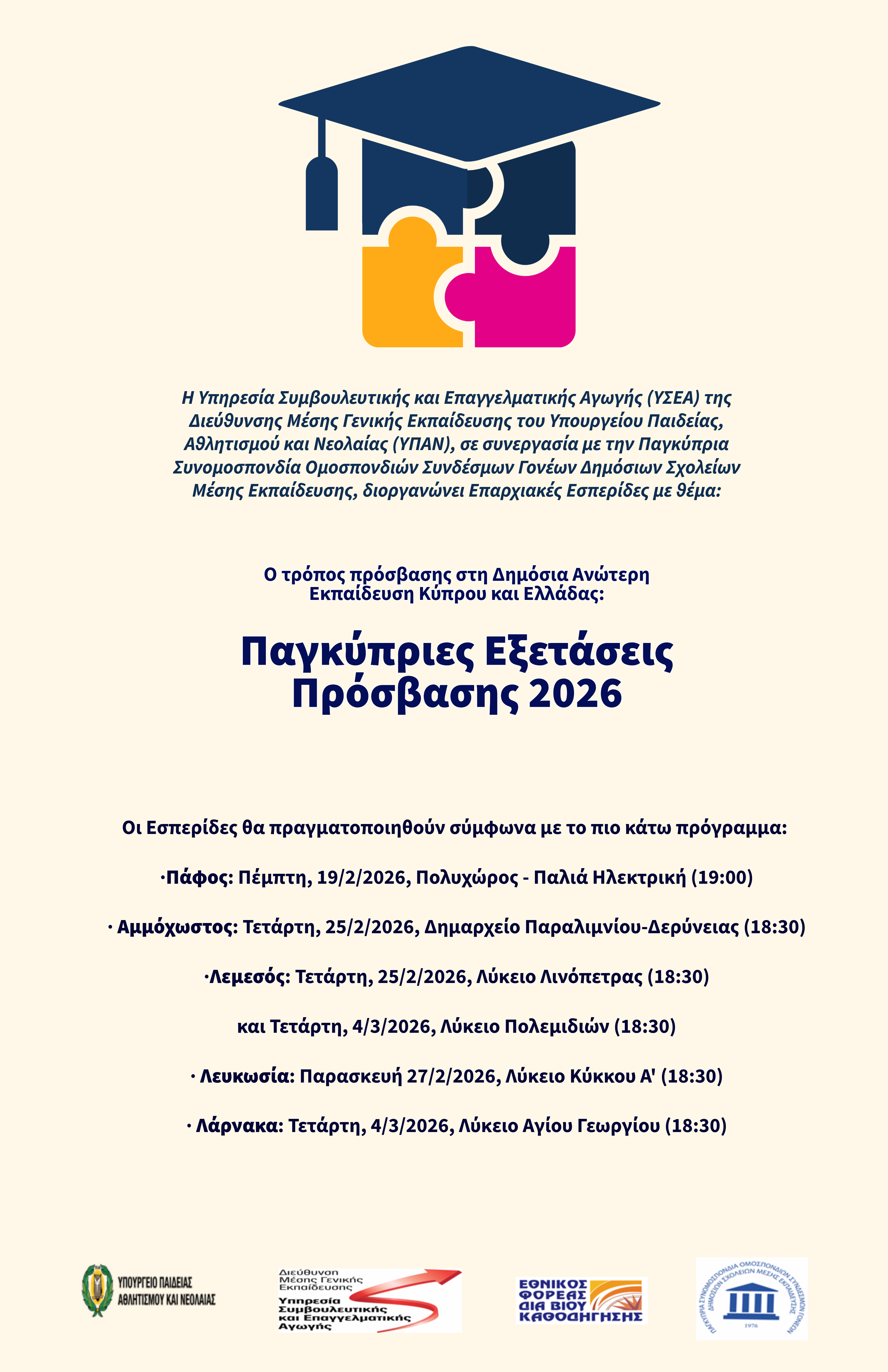 - Εσπερίδες 2026 - Πρόγραμμα - Ενημέρωση για τις Παγκύπριες Εξετάσεις
