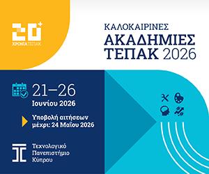 - Πανεπιστήμιο Κύπρου - Καλοκαιρινές Ακαδημίες 2026 (29 Ιουνίου - 3 Ιουλίου 2026) - Υποβολή Αιτήσεων (30/03/2026 - 23/04/2026)